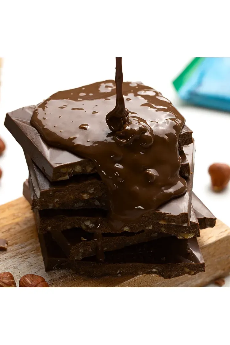 INGREDIENTES: MASSA DE CACAU, CACAU EM PÓ, MANTEIGA DE CACAU, AVELÃ, EDULCORANTES MALTITOL E SUCRALOSE, EMULSIFICANTES GOMA ACÁCIA, POLIGLICEROL POLIRRICINOLEATO, SAIS DE AMÔNIO DO ÁCIDO FOSFATÍDICO E TRIESTERATO DE SORBITANA E AROMA IDÊNTICO AO NATURAL DE BAUNILHA. FORNECE QUANTIDADES NÃO SIGNIFICATIVAS DE AÇÚCARES. ALÉRGICOS: CONTÉM AVELÃ. PODE CONTER LEITE, AVEIA, OVO, SOJA, AMENDOIM, AMÊNDOA, CASTANHA DE CAJU, CASTANHA DO PARÁ, MACADÂMIA, PECÃ, PISTACHE E NOZES. NÃO CONTÉM GLÚTEN.