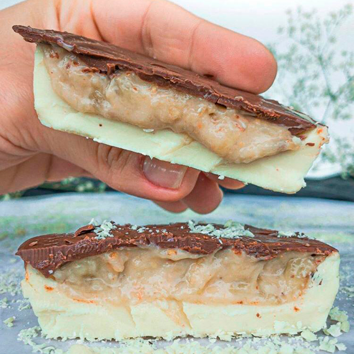 Por fim, cubra tudo com o chocolate amargo e leve ao freezer por mais 10 minutos.