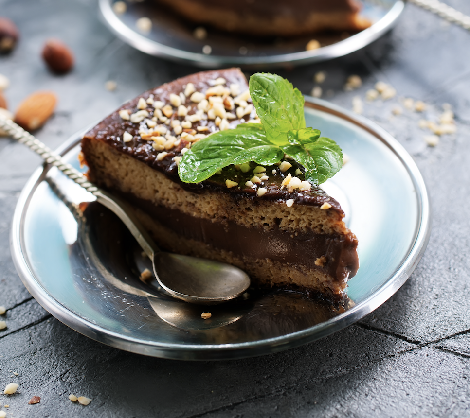 4) Coloque a mistura na forma, decore com as nozes picadas e refrigere por mais 20 minutos antes de servir. Para decorar, use uma folhinha de hortelã. Prontinho! É só se deliciar com essa tortinha fit de chocolate superfácil, com sabor surreal e zero adição de açúcares!