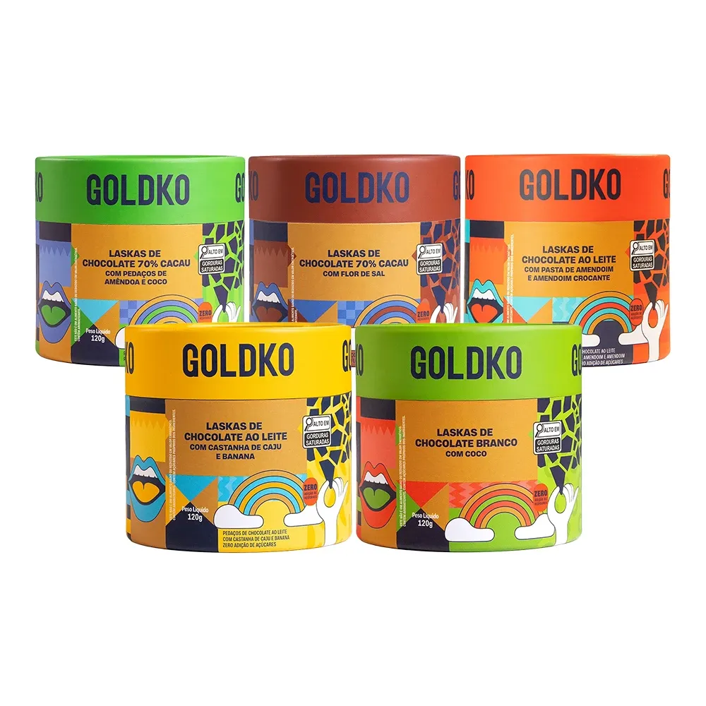 Kit Contém: 1x Laskas de chocolate 70% cacau com amêndoas e coco zero adição de açúcares 1x Laskas de chocolate 70% cacau com flor de sal zero adição de açúcares 1x Laskas de chocolate ao leite com pasta de amendoim e amendoim crocante zero adição de açúcares 1x Laskas de chocolate ao leite com castanha de caju e banana zero adição de açúcares 1x Laskas de chocolate branco com pedaços de coco zero adição de açúcares