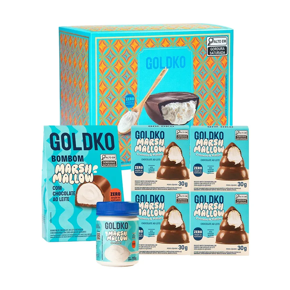 Este kit reúne um dos sabores mais amados da marca: o clássico chocolate ao leite combinado com o famoso marshmallow GoldKo, conhecido pela sua textura leve, cremosa e irresistível.