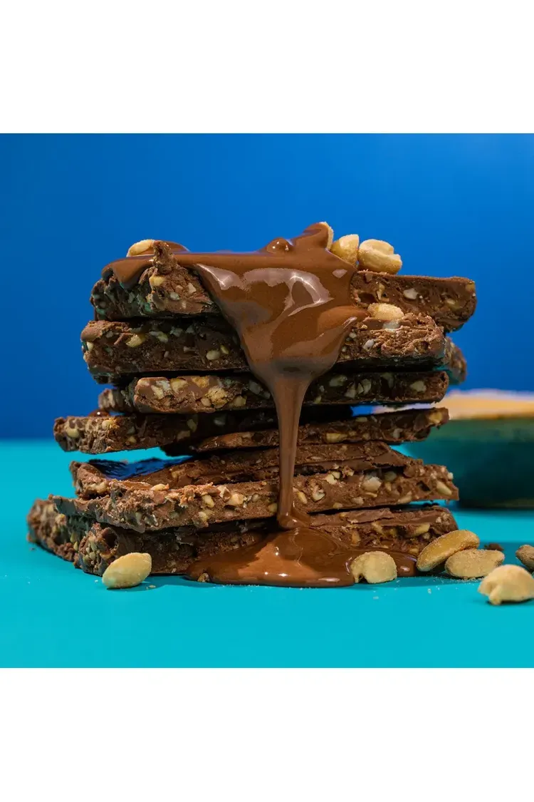 Laskas de chocolate ao leite com pasta de amendoim e amendoim crocante zero açúcar. Uma combinação perfeita entre cremosidade, crocância e muito sabor surreal GoldKo.